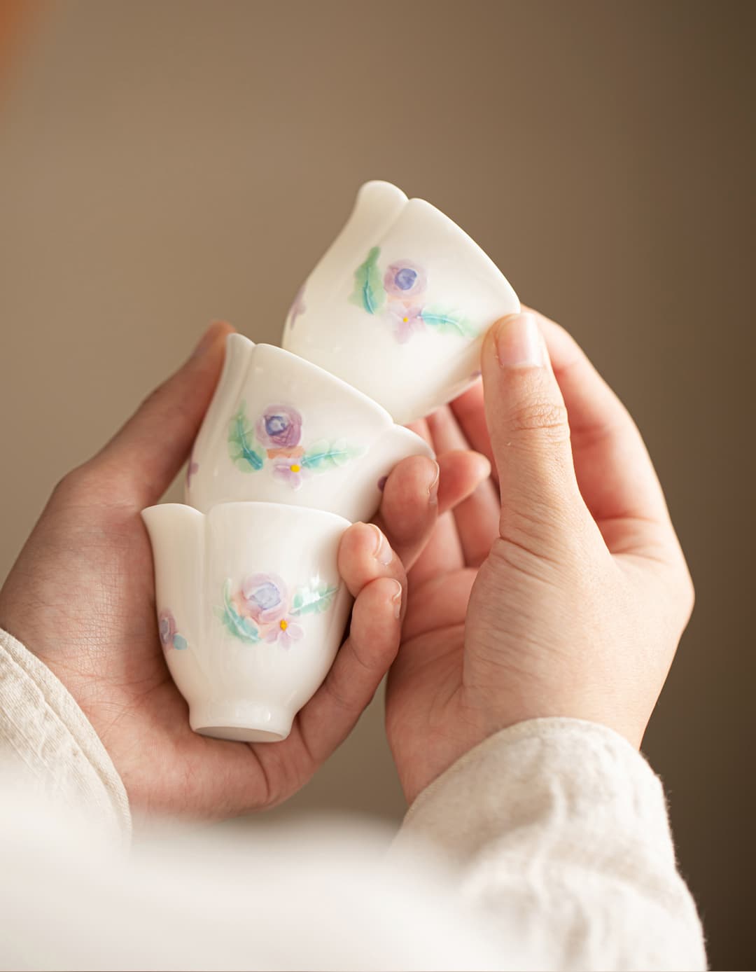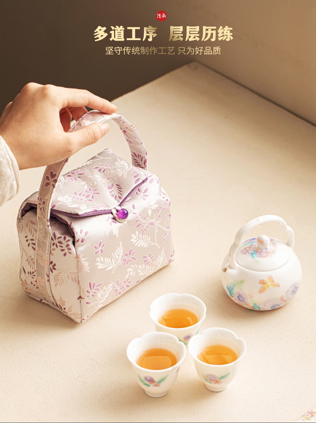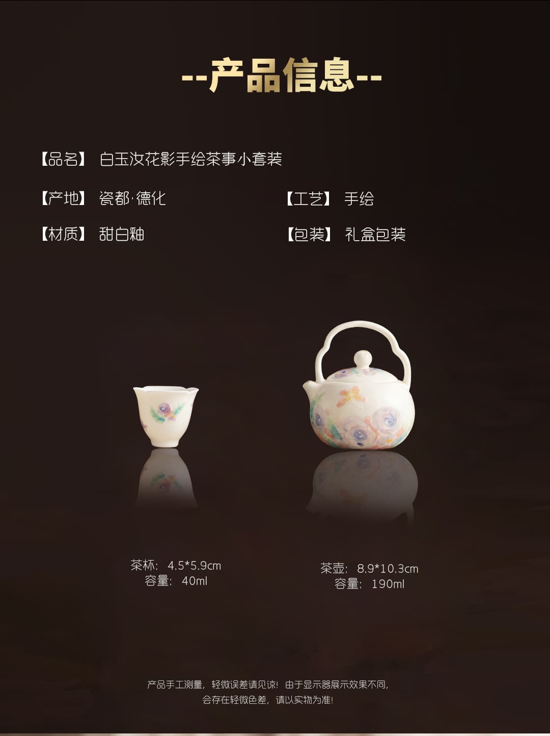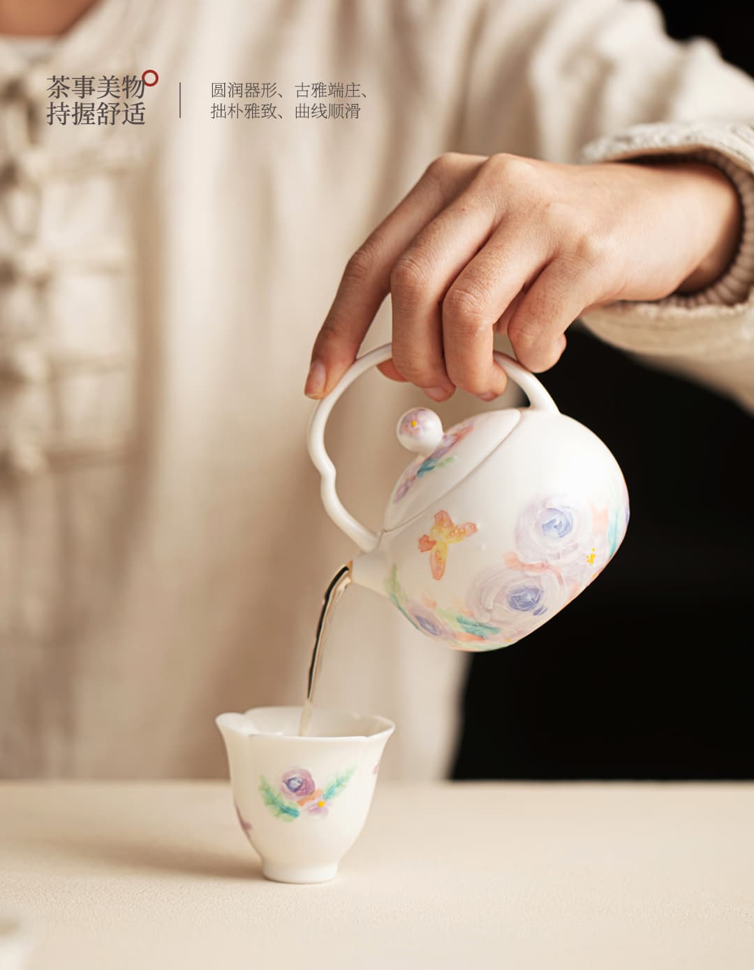 尾桥下窑白玉汝花影一壶三杯套装手绘陶瓷茶具礼品定制