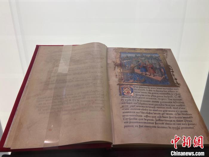 5月8日,展出的16世纪初饰有插图的羊皮纸手抄本《寰宇记》(又称《马可·波罗游记》)。 林波 摄