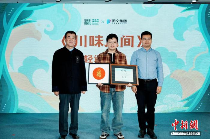 作家轻语江湖(中)创作的《川味人间》斩获“阅见非遗”第三届征文大赛金奖,图为颁奖现场。 主办方供图