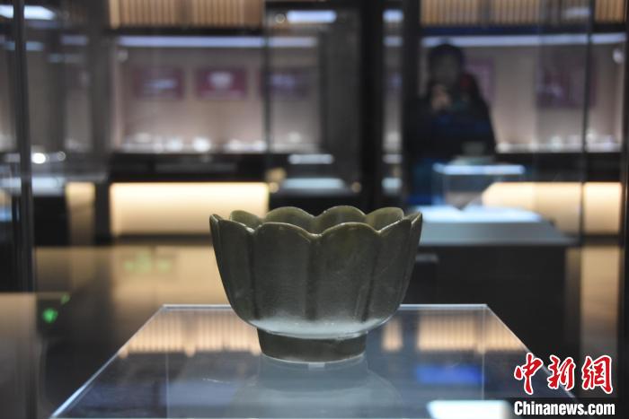 2025年2月,河南宝丰汝窑博物馆馆藏文物“北宋汝窑天青釉莲花式瓷碗”。 王宇 摄