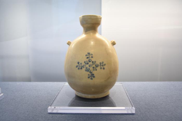 “丝路华章——唐代青花瓷瑰宝展”上展出的唐代青花穿带壶。