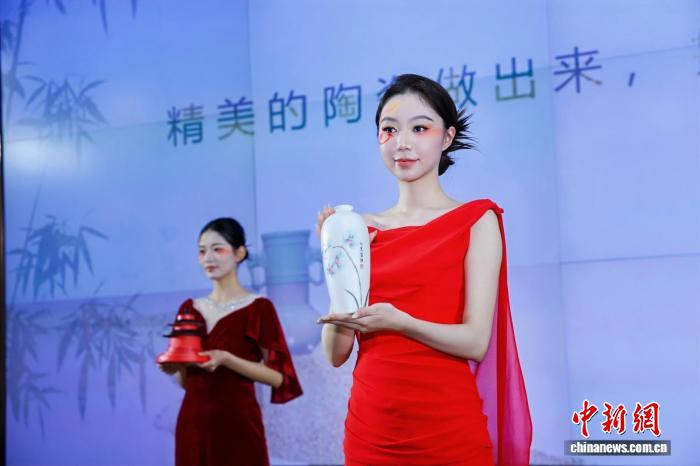 模特在活动现场展示精品德化白瓷。 主办方供图