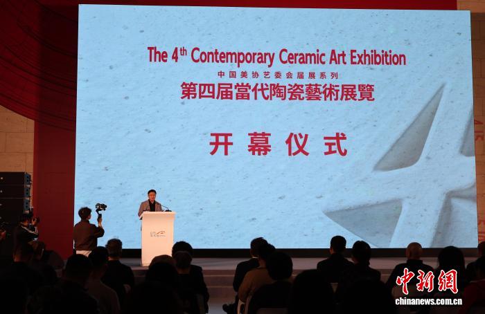 第四届当代陶瓷艺术展览21日开幕,山东美术馆馆长杨晓刚主持开幕式。赵晓 摄
